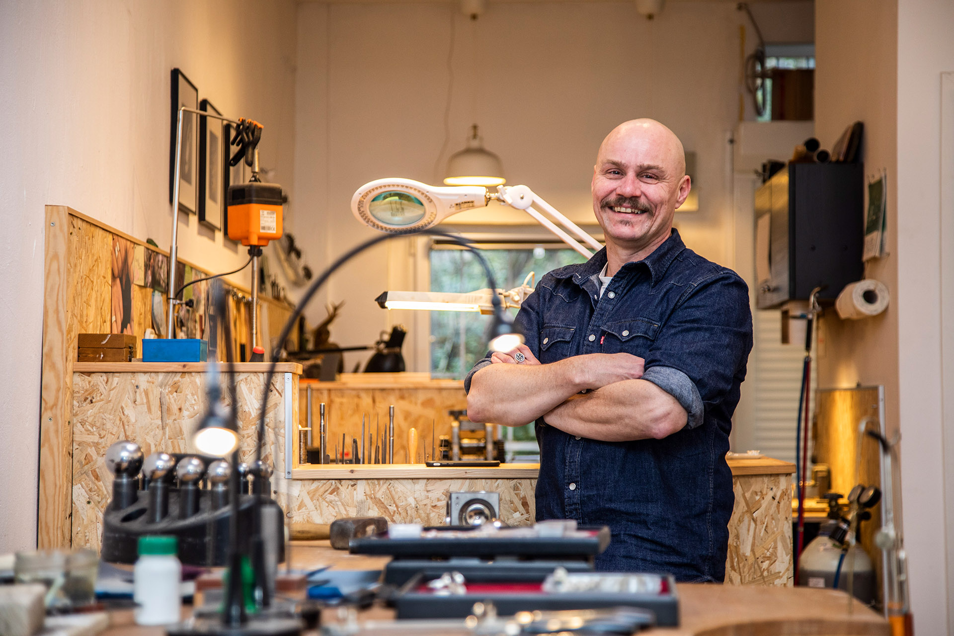 Wer schon immer mal eine eigene Idee für ein Schmuckstück selbst verwirklichen wollte, ist bei Jens Walther genau richtig. Das Ergebniss ist ein echtes Unikat, statt Schmuck von der Stange – genau wie sein Erscheinungsbild.
